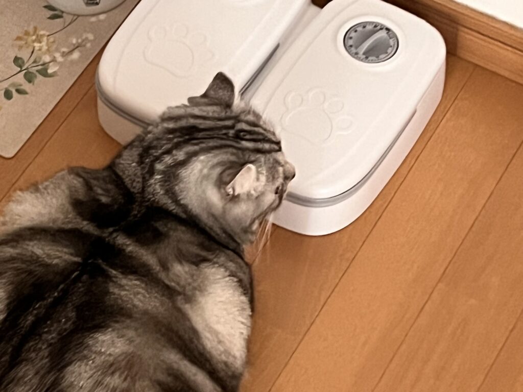 世の中にはもっと多機能な自動給餌器もたくさんあります。大きなタンクにカリカリを貯めておき、毎日決まった時間に給餌してくれるタイプは、確かに普段使いにも便利そうです。